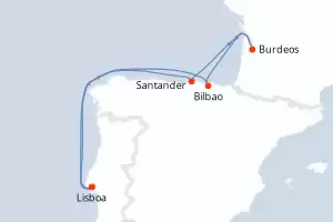 Itinerario : Lisboa, Santander, Burdeos, Bilbao, Lisboa