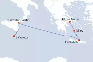 Itinerario : El Pireo Atenas, Milos, Heraklion, Naxos Di Giardini, La Valetta