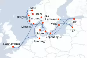 Itinerario : Southampton, Mandal, Sandnes, Olden, Bergen, Flaam, Copenhague, Tallin, Estocolmo, Riga, Visby, Ronne, Copenhague