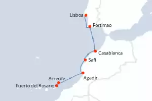 Itinerario : Lisboa, Portimao, Casablanca, Safi, Agadir, Arrecife, Puerto del Rosario