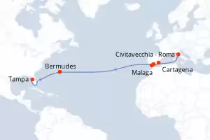 Itinerario : Civitavecchia - Roma, Cartagena, Malaga, Gibraltar, Bermudes, Tampa