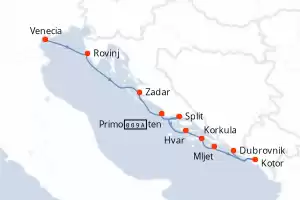 Itinerario : Venecia, Rovinj, Zadar, Primošten, Split, Hvar, Korkula, Mljet, Kotor, Dubrovnik