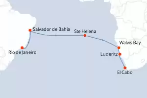 Itinerario : Rio de Janeiro, Salvador de Bahia, Ste Helena, Walvis Bay, Luderitz, Le Cap , Rio de Janeiro, Salvador de Bahia, Ste Helena, Walvis Bay, Luderitz, Le Cap
