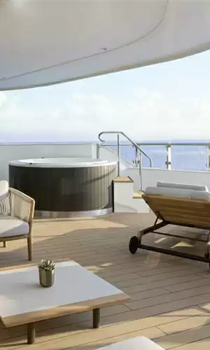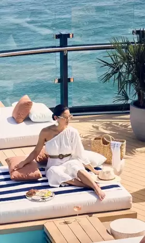 El alojamiento constituye uno de los puntos fuertes de la experiencia. Los yachts de la colección están compuestos exclusivamente por suites, todas equipadas con una terraza privada con vistas al mar. Estos espacios, amplios y bañados de luz, han sido concebidos para prolongar la sensación de evasión incluso en la intimidad de la cabina. La decoración combina elegancia contemporánea, confort residencial y acabados de alta gama, con un espíritu que recuerda a las mejores direcciones de Ritz-Carlton. El conjunto crea una atmósfera de residencia privada en el mar, ideal para disfrutar de un viaje bajo el signo de la serenidad.